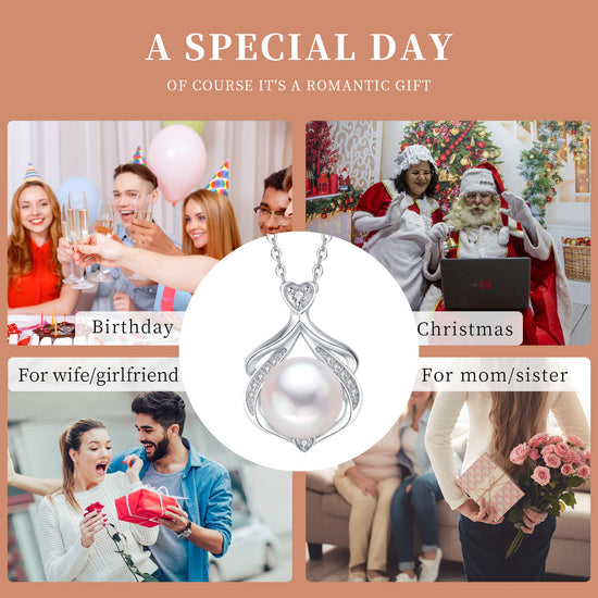 Love Heart Necklace with Natural Pearl(8-9mm) CZ in Sterling Silver